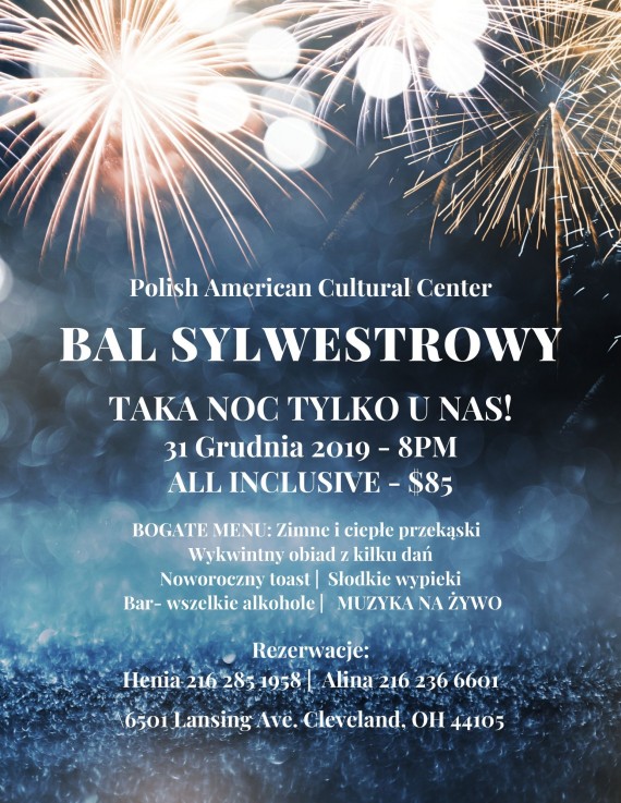 BAL SYLWESTROWYTAKA NOC TYLKO U NAS!Zapraszamy Serdecznie!!WTOREK, 31 GRUDNIA 2019 | 8PM6501 Lansing Ave. Cleveland, OHAll Inclusive – $85 od osobyW ofercie:– BOGATE MENU:– Zimne i ciepłe przekąski w unikalnym stylu– Wykwintny obiad z kilku dań (dla każdego coś pysznego…)– Noworoczny toast – szampan na każdy stół– Po północy czerwony barszcz z krokietami– Słodkie wypieki, […]